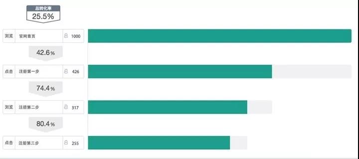 圖5:通過【漏斗分析】監測到的用戶注冊轉化過程