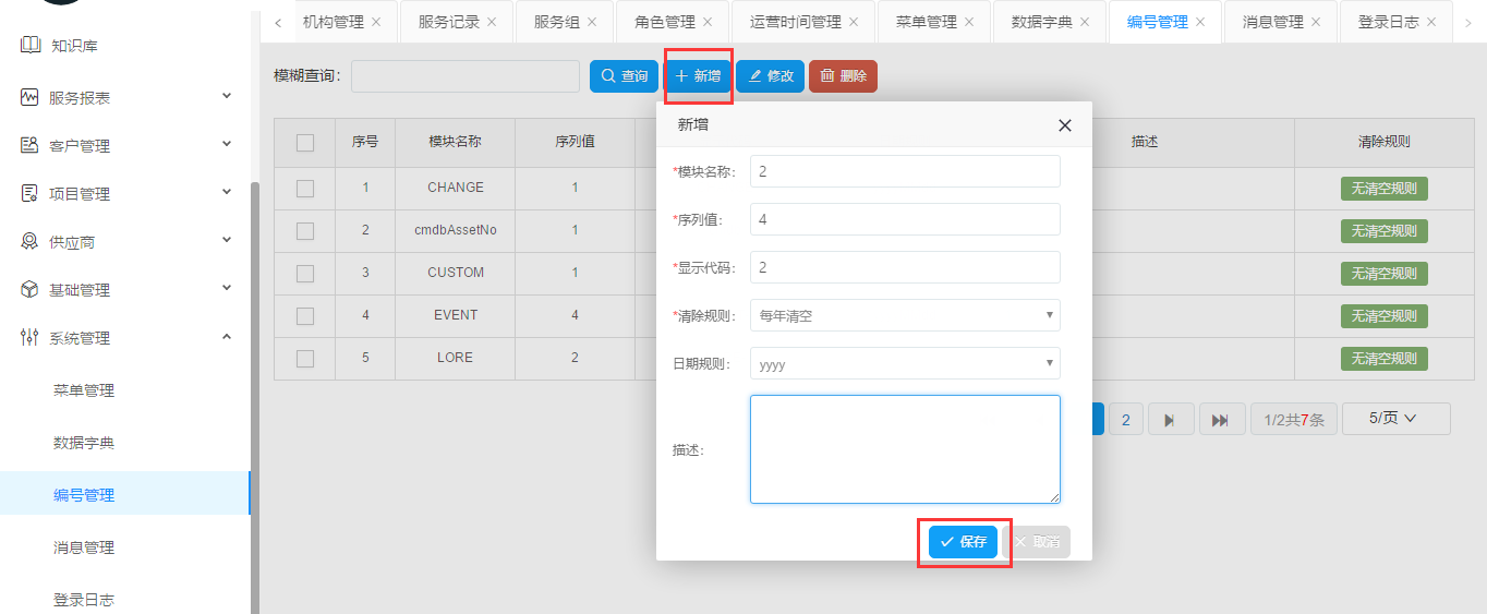 點(diǎn)擊新增按鈕,新增編號(hào),企業(yè)根據(jù)實(shí)際情況填寫完成點(diǎn)擊“保存”即可
