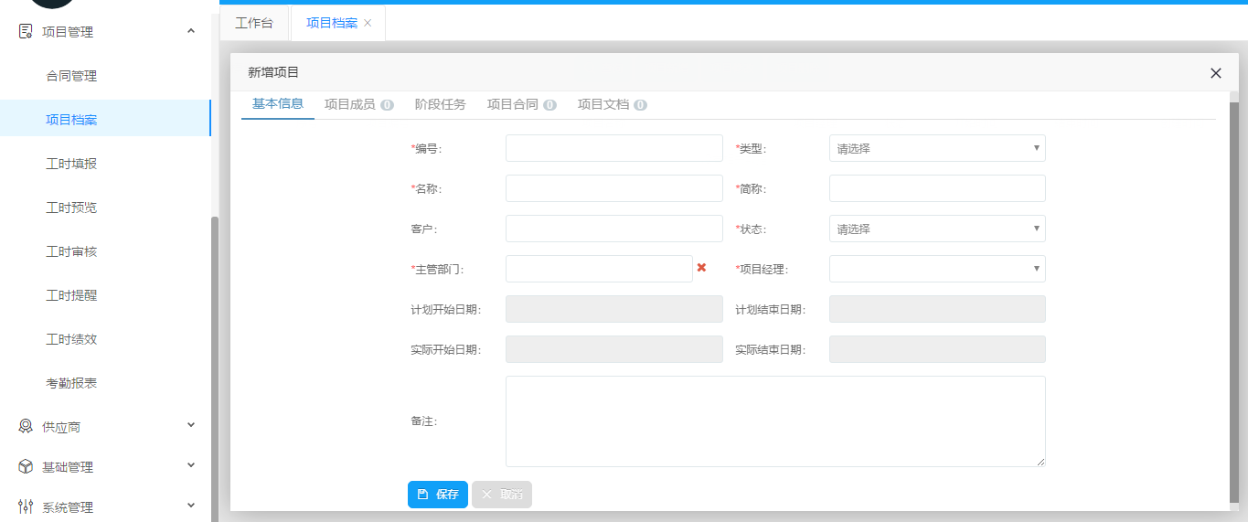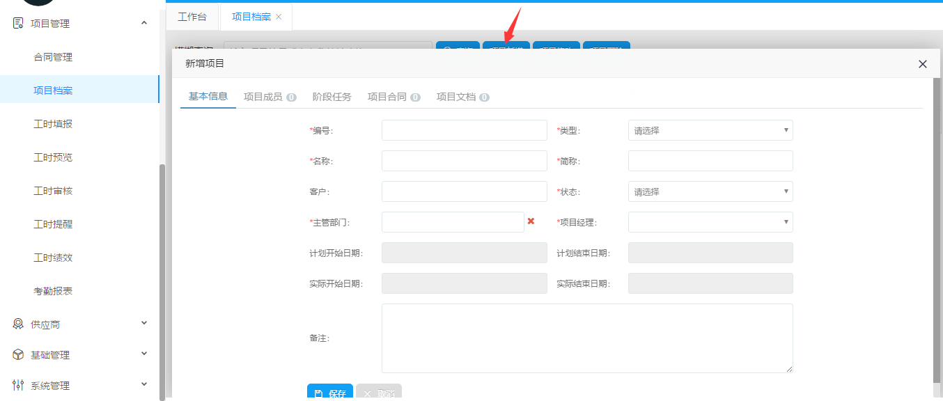 注:需要先保存項(xiàng)目基本信息才能進(jìn)行項(xiàng)目的其他操作