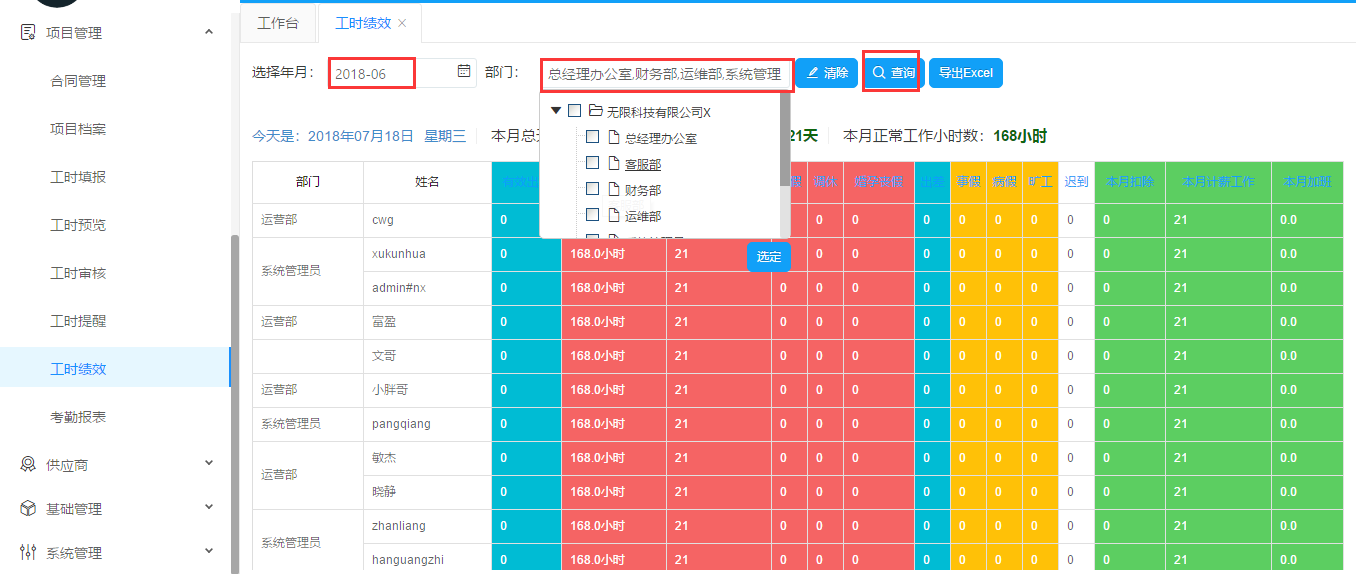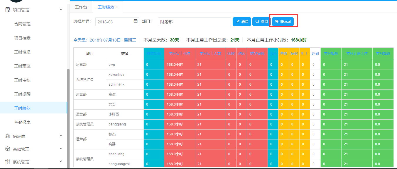 根據(jù)年月、部門篩選出來的結(jié)果,點(diǎn)擊導(dǎo)出Excel
