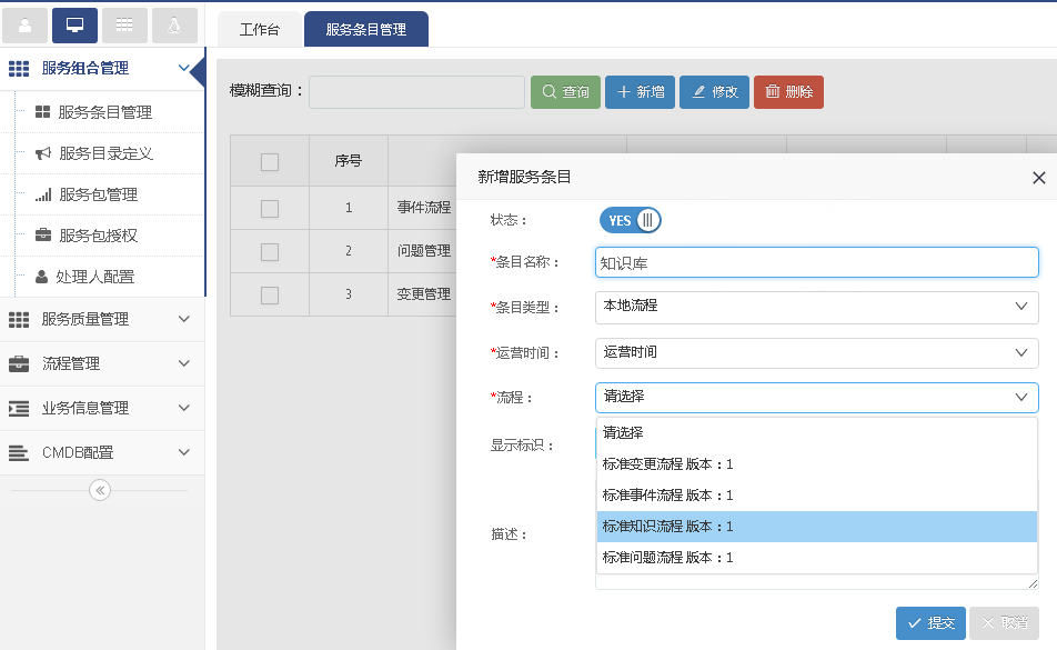 服務條目即為服務目錄可申請的流程模板,以流程和運營時間為基礎