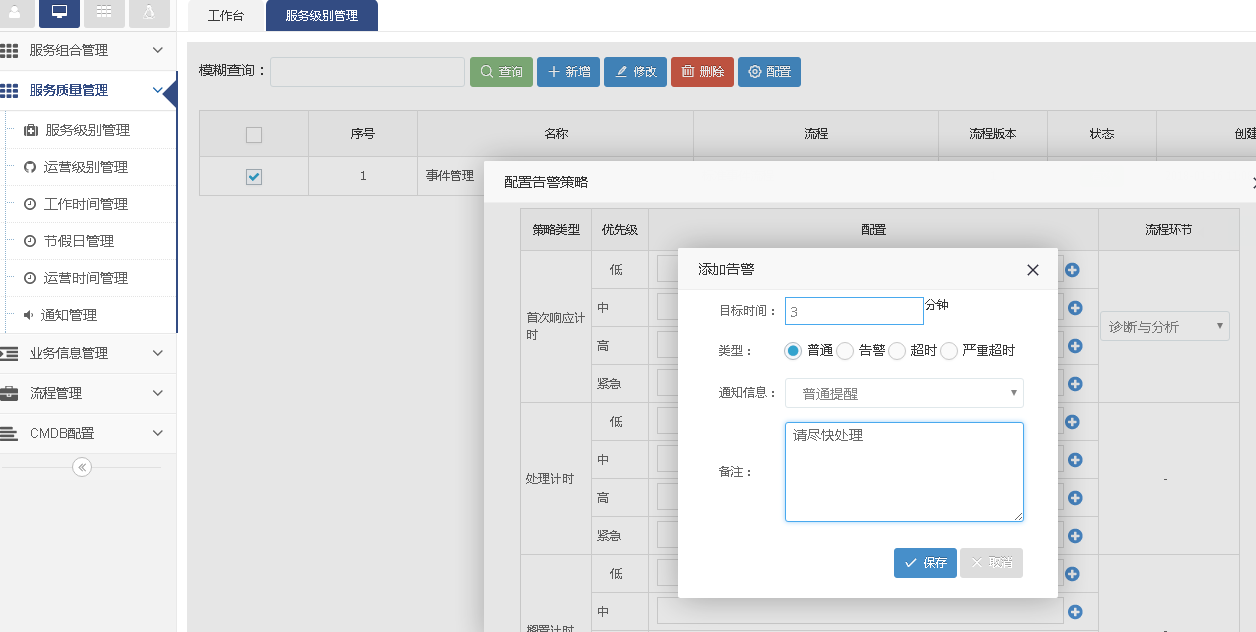 根據(jù)流程節(jié)點(diǎn)的優(yōu)先級(jí)配置告警時(shí)間和通知方式