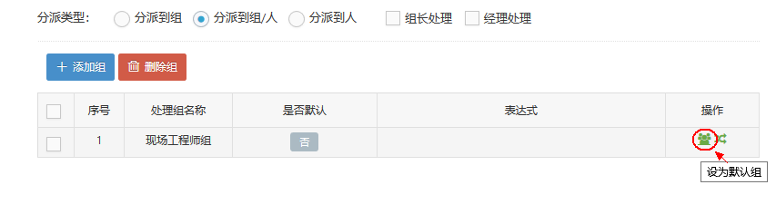 選擇多個(gè)組或者處理人,可設(shè)置默認(rèn)的組,系統(tǒng)優(yōu)先自動(dòng)轉(zhuǎn)派。如下圖: