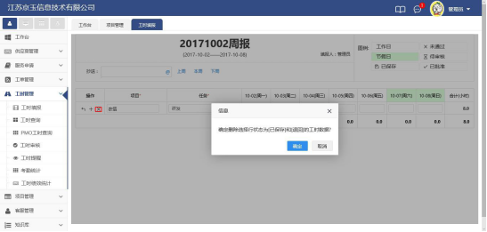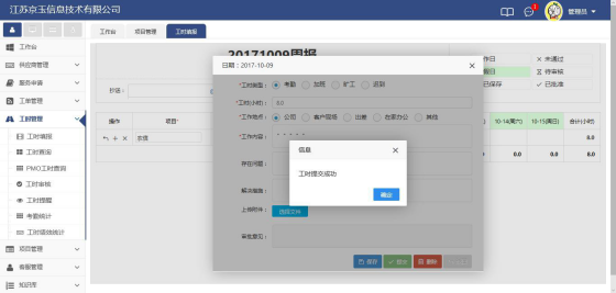 2)點(diǎn)擊已保存的工時(shí),彈出對(duì)話框后點(diǎn)擊提交
