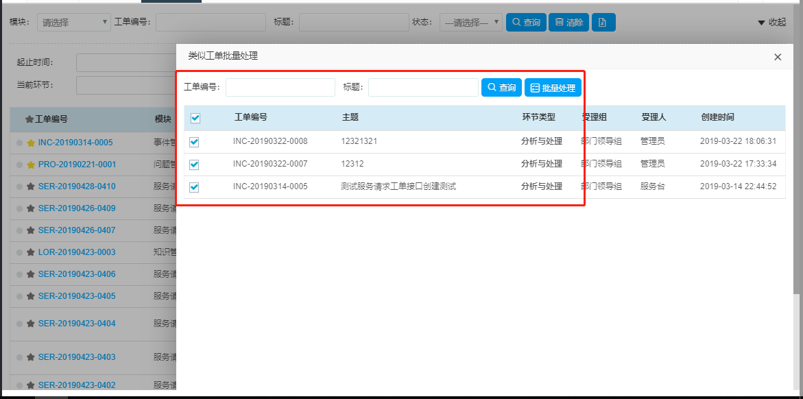 4、新增工單批量處理、工單PDF導出、自定義工單查詢功能,強化服務臺對海量工單的快速處理能力。