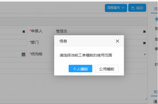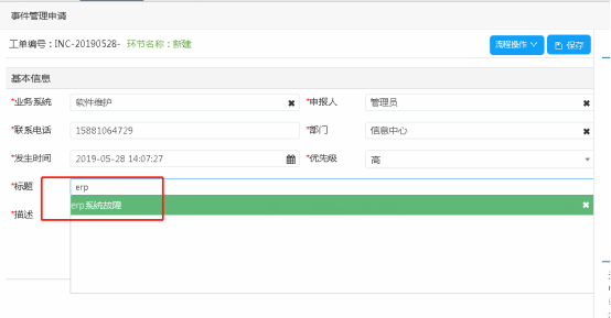 進入新建工單頁面,在標題欄輸入目標關(guān)鍵字,系統(tǒng)模糊檢索相關(guān)模板并顯示出來。如下圖: