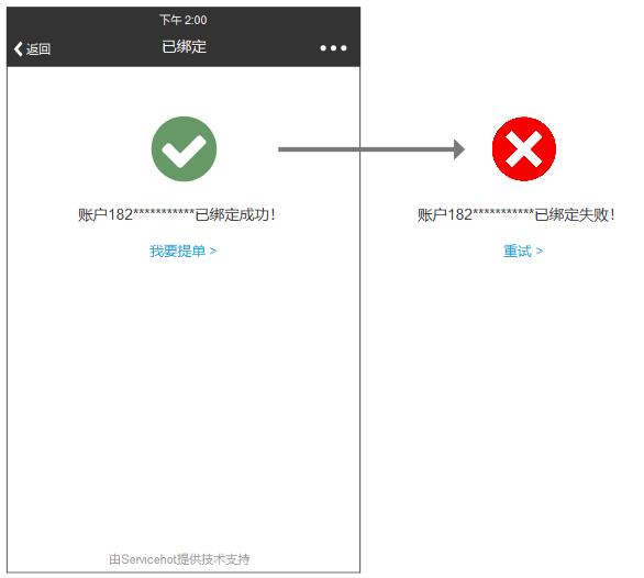 綁定失敗后,點擊重試,會回到綁定賬戶頁面,賬戶和密碼值保留在輸入框內,方便重復提交。
