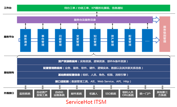 ServiceHot團隊在ITIL/ITSS領域具有數十年經驗沉淀,可為企業提供ITSM和ITSOM產品,幫助企業完成ITIL流程梳理、人員ITIL理論培訓、ITSM定制化落地實施,及相關服務。官網:m.xidj.cn