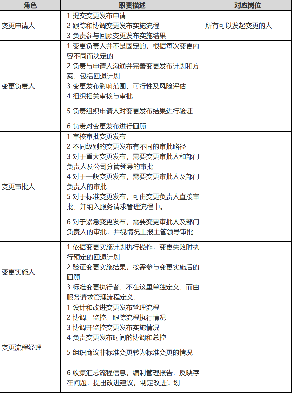 以確保在變更發布風險可控的前提下合理調配變更發布管理資源,同時由變更發布流程經理組織定期回顧評