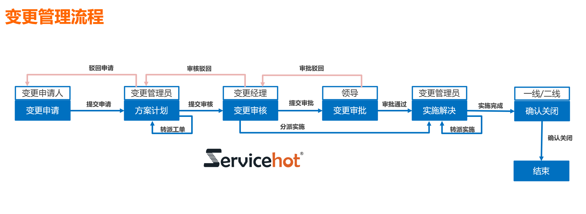 企業運用信息技術的根本目的是為其業務運作提供支持。這種支持或是戰略層的,或是戰術層的,也可能是運作層的。企業面臨的外部環境是不斷變化的,因而它的業務運作也必須隨著外部環境的變化做出調整;相應地,支持業務運作的IT服務及其基礎架構也必須進行必要的變更,本文ServiceHot為大家分享ITIL中之一的變更管理是什么,及變更管理在企業流程中應該如何進行有效實施管理變更流程?