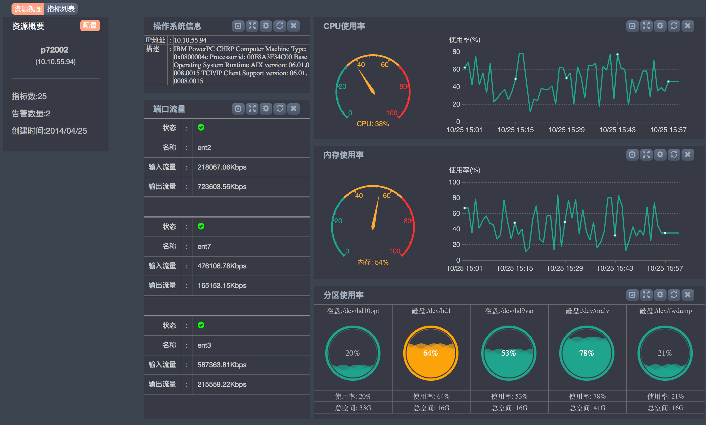 ?  物理資源狀態及使用情況(CPU、內存、存儲、網卡流量)