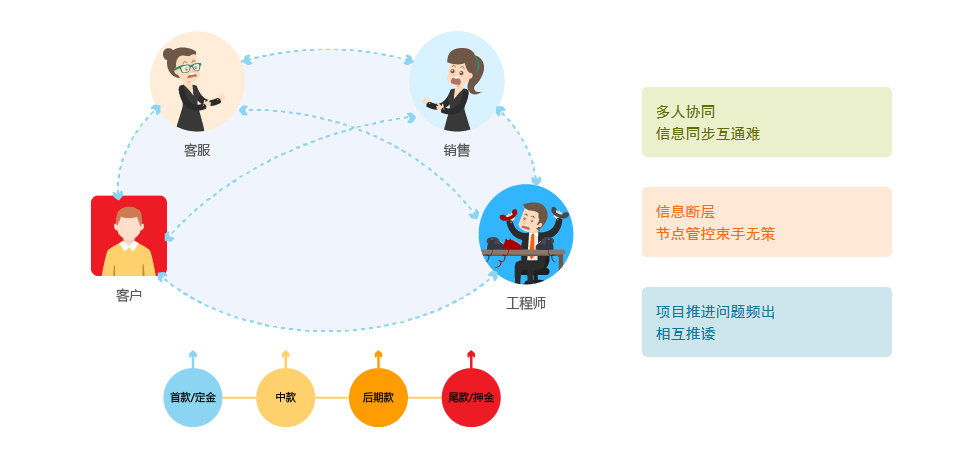 1、多部門流轉繁瑣,解決客戶問題效率低下