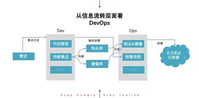 從信息流轉來看,DevOps包含了從需求管理到需求開發、代碼管理、基礎設施管理、持續集成、自動化測試、持續部署、持續發布和應用運維管理全流程。