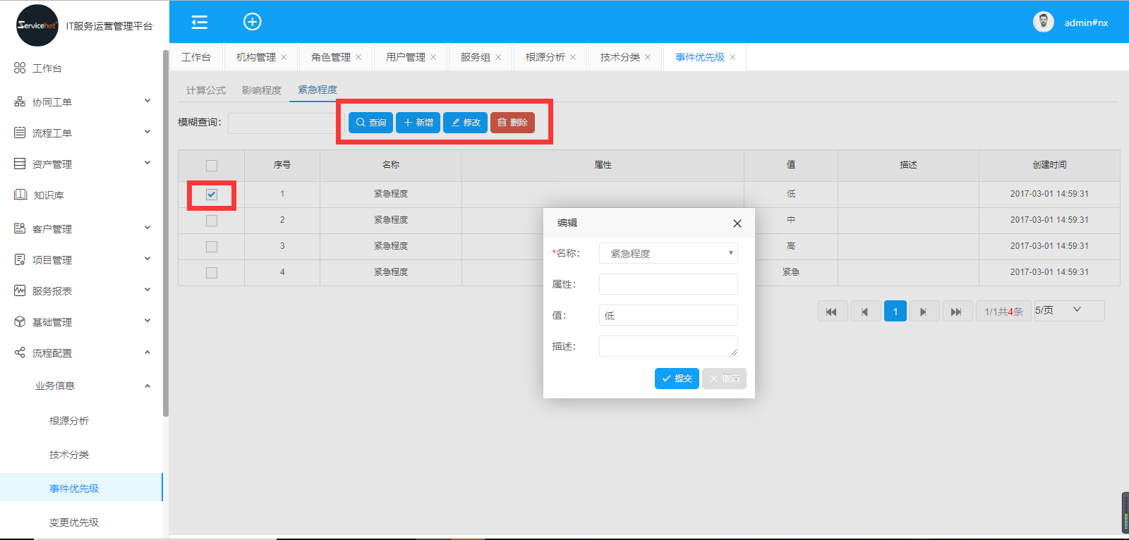 事件優(yōu)先級(jí)通過(guò)影響程度、緊急程度兩個(gè)維度自定義優(yōu)先級(jí)。