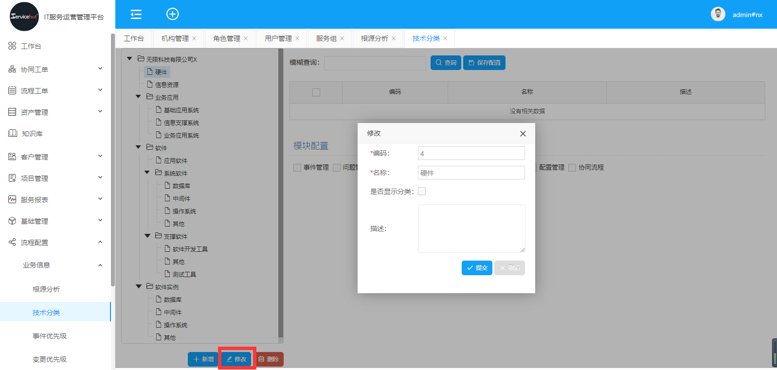 選擇「業(yè)務(wù)信息管理」>>「技術(shù)分析管理」進(jìn)入如下圖新增根源分析界面;